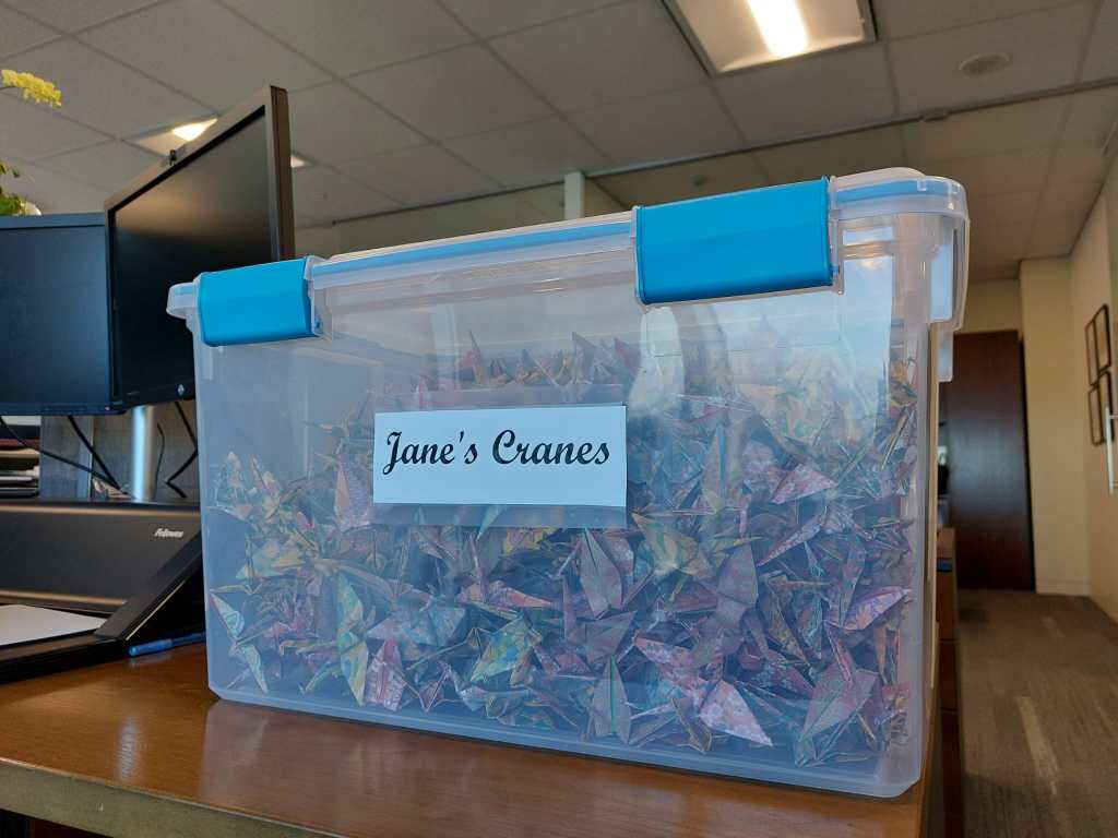 The second special delivery was the arrival of 1,000 paper cranes… Jane’s Cranes.
