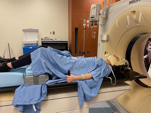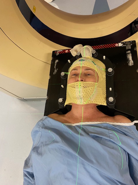 I am officially 100% radiated… or as I like to think of it, fully zapped. To recap the week, I received my five planned Stereotactic Radiation Treatments (SRT). To give you an ideas of what this entails, receiving radiation treatments are pretty straightforward. Essentially I lie perfectly still on a platform to which my “goalie mask” is clipped, so that I am not able to move my body around while being radiated. While I get to lie down and be clipped into an immobile position, the machine itself has several large drums that move around me and shoot the cancer-killing rays into my head. This sounds like it’s painful, but there’s no pain or any form of sensation at all (other than the snuggish mask over my puffy face!)… it’s essentially like getting an x-ray… just with more intense rays.