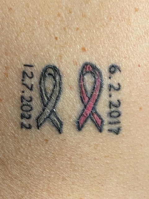 I also took the plunge of adding a new piece to my original Pink Ribbon tattoo. I decided to add the Grey Ribbon for brain cancer, along with my second date of diagnosis. To give you some perspective, the whole tattoo (located on my back) is about 1.5″ high and 2″ wide… so not really large as far as tattoos go… however, with me being squeamish, getting this little ribbon added did not come without some drama… halfway through the session, I, of course, became quite lightheaded and the team at the tattoo studio had to work pretty quickly to prevent me from completely passing out. After all the drama was over, I was able to convince the tattoo artist that I would be okay to finish up the tattoo… my angle was showing him an image of the injection that I’ve received in my stomach every month for the last five years… comparatively, my monthly injection is WAY worse than a tattoo needle… and in hindsight, I probably should have thought of that before we got started…